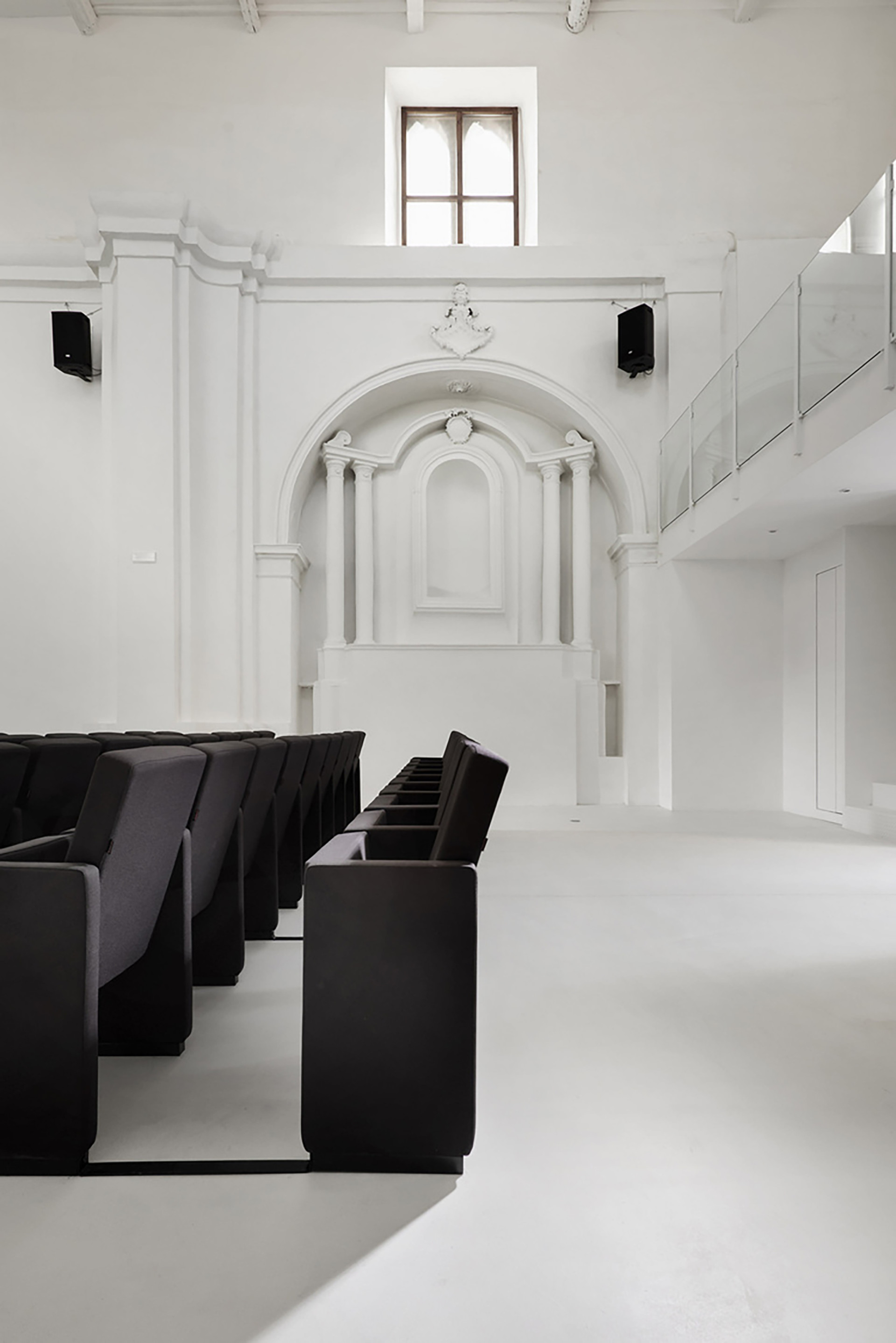 1967年前,它是一個公共的非宗教性劇場,因此必須先進行舞台調節,裝置維護,維安和擺設等工作,才能夠將原本的教堂大廳打造成如今的會議室與劇院大廳。