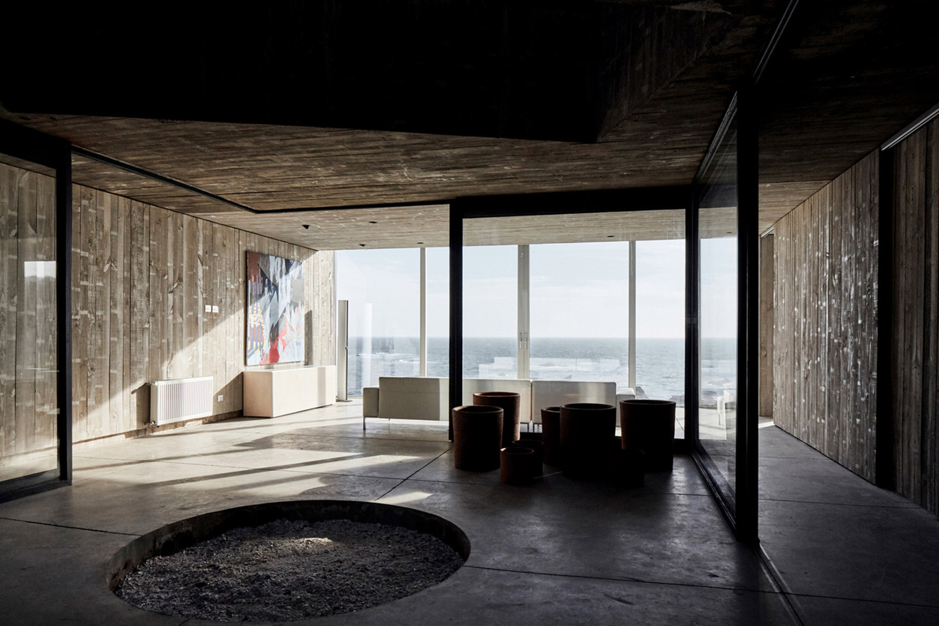 週末度假屋是人們最終讓自己回到更基本生活的最終靜修之所,同時作為探索原始的機會。然而地理環境是何等殘酷,以至於只有強壯且有男子氣概的元素才能與之相襯。在這裡,因為地勢險峻,海風猖狂,舉目向海洋望去,太平洋不是太平洋,銀白浪花取代了湛藍海洋。
